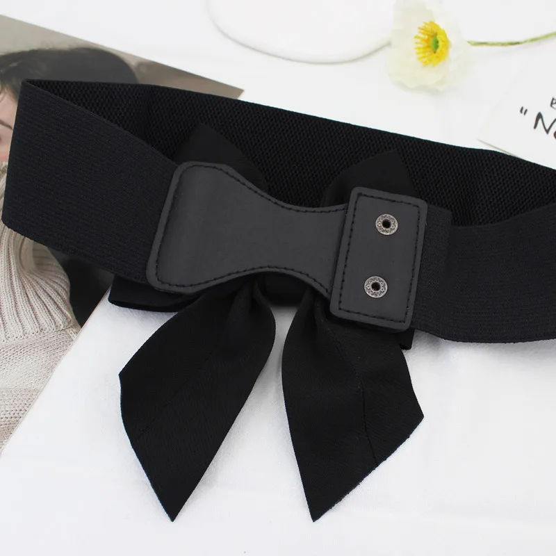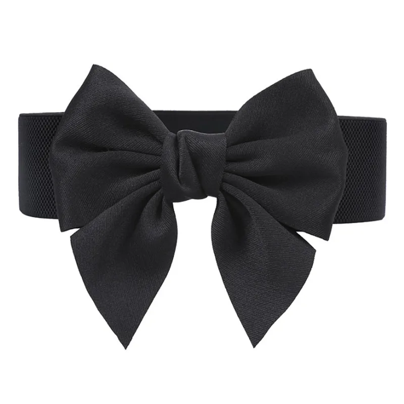 1PC New Fashion Elegant Large Bow Elastic Belts for Women Wide Side Belt Dress Female Jeans Waistband Trouser Accessory