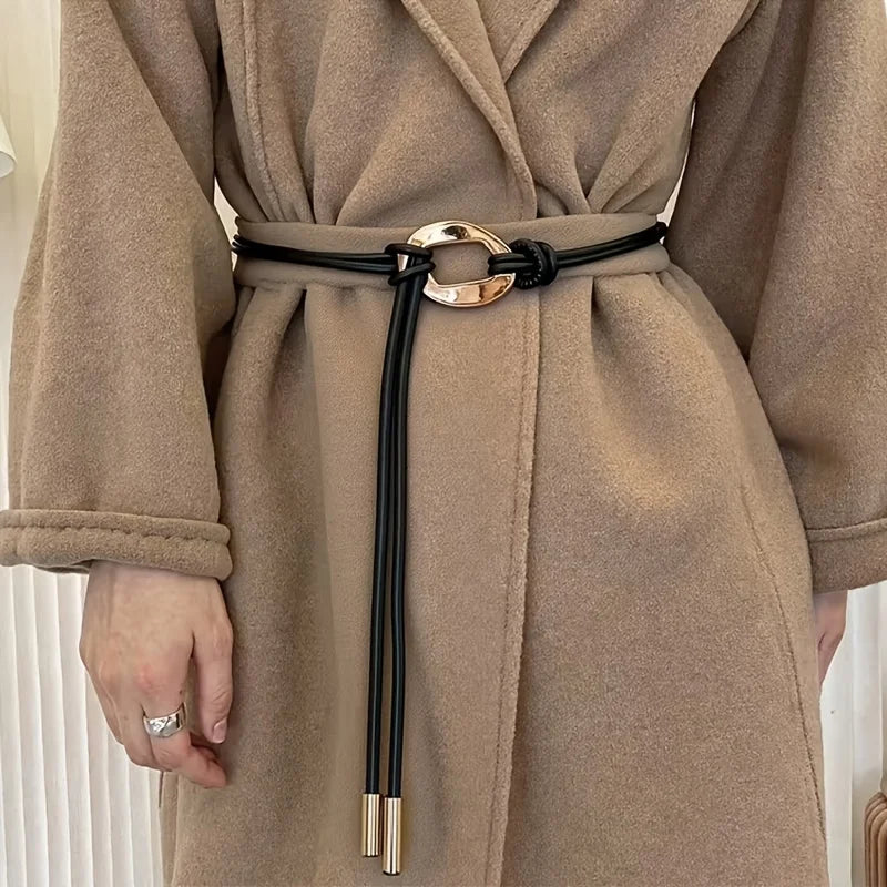 Elegant ladies tie knot belts, retro thin waistbands, fashionable decorative dresses, shirts, coats and overcoats with belts