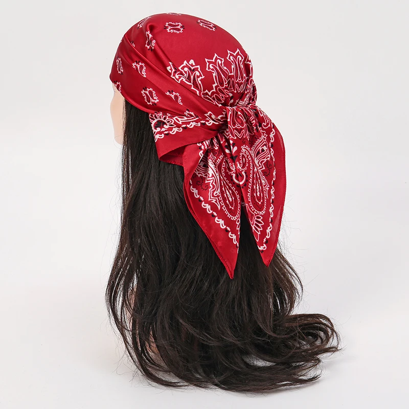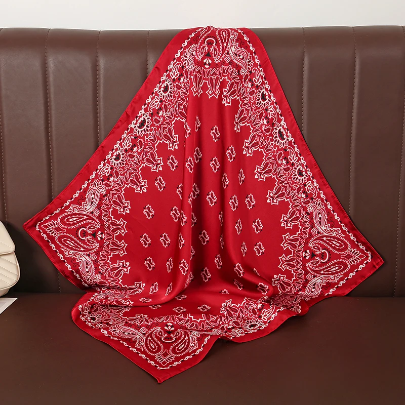 Red Paisley Designer Print Scarf Women Silk Scarves Luxury Bandana Hijab Neckerchief Shawl Kerchief Hair Band Foulard