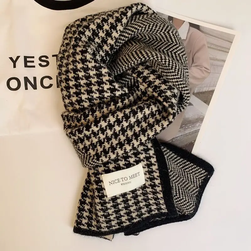 Scarf female winter new atmosphere sense of double-sided students cute warm thickened knitting senior sense of scarf