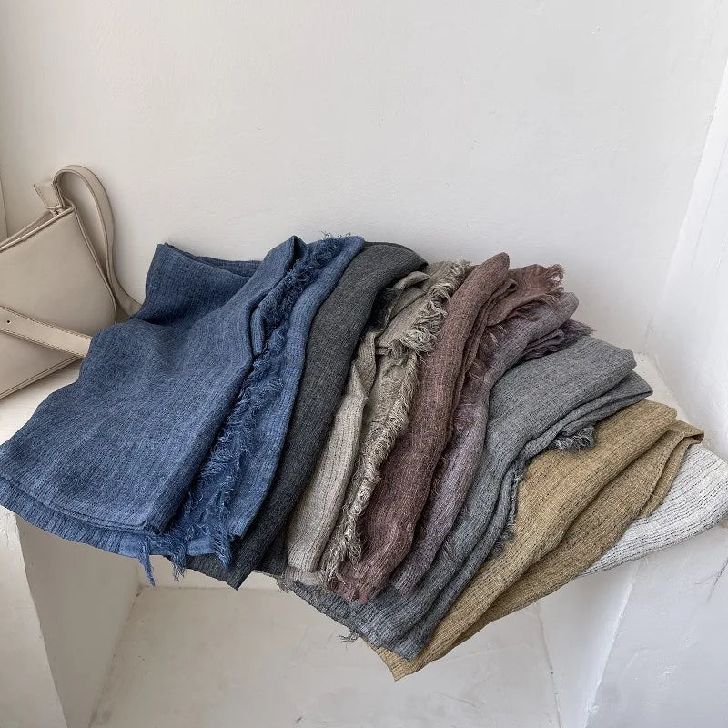 Scarf Women's Autumn Literary and Artistic Fresh and Versatile Contrasting Color Striped Texture Same Cotton Linen Thin Shawl
