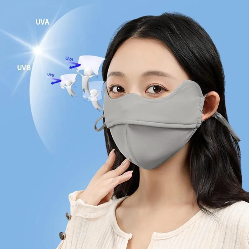 Sunscreen Face Scarf Thin Ice Silk Mask Summer Cover Veil Eye Protection Gini Golf Pattern Randomly On The Left Or Right Faces