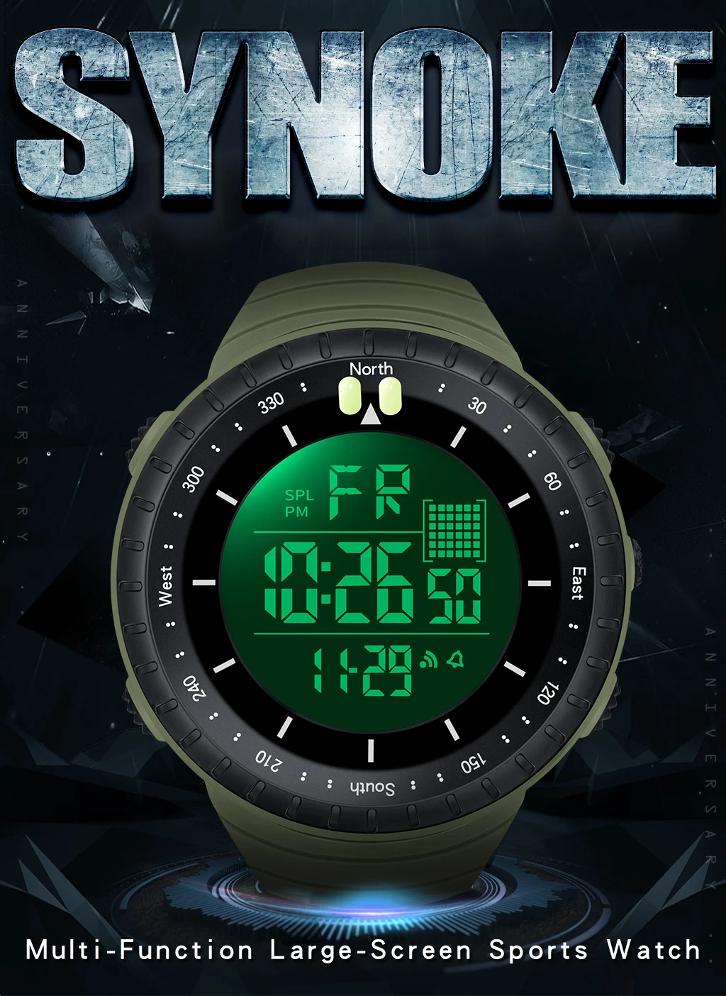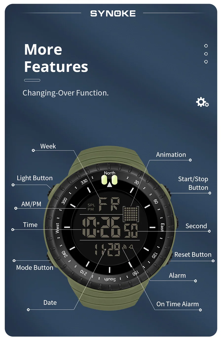 SYNOKE Outdoor Military Digital Watch For Men Fashion Retro Men Watch Sports Waterproof Men Watch Multifunctional Handsome Men