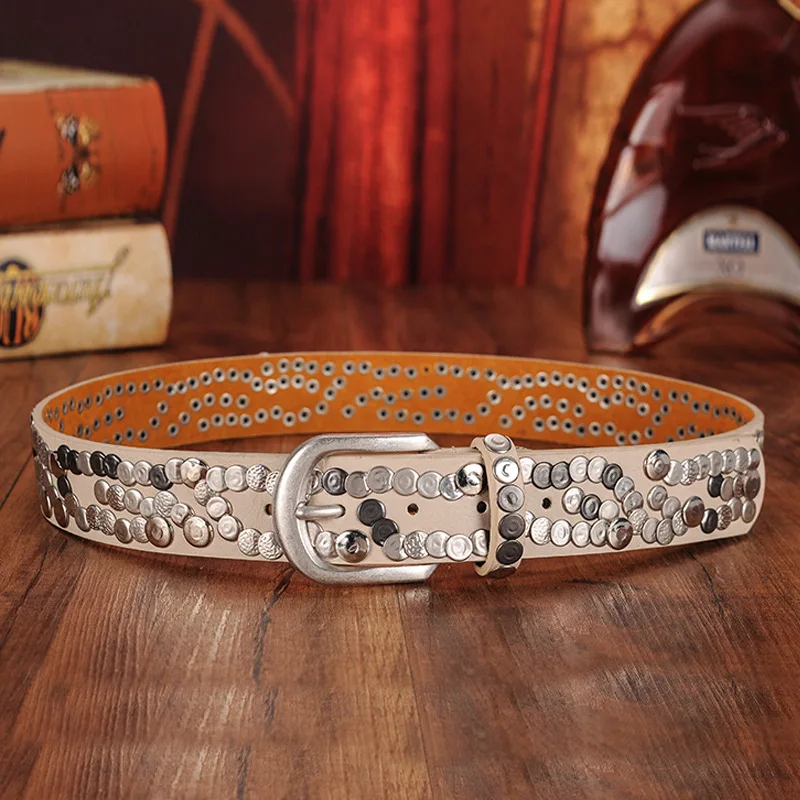 Women Belt Fashion Punk Pin Buckle Vintage Rivets Luxury Lady's Original Leather Belts For Women Jeans Waistband Female