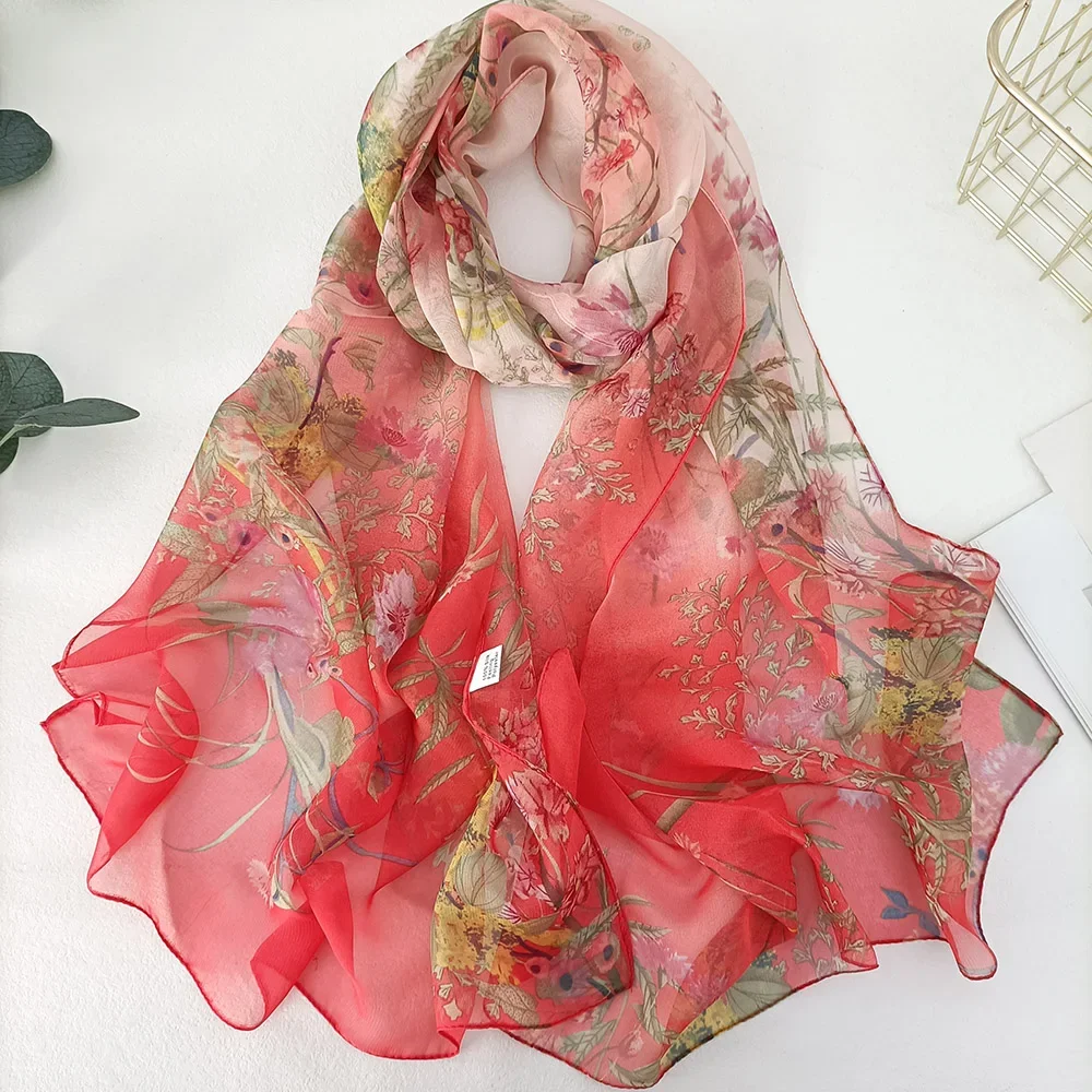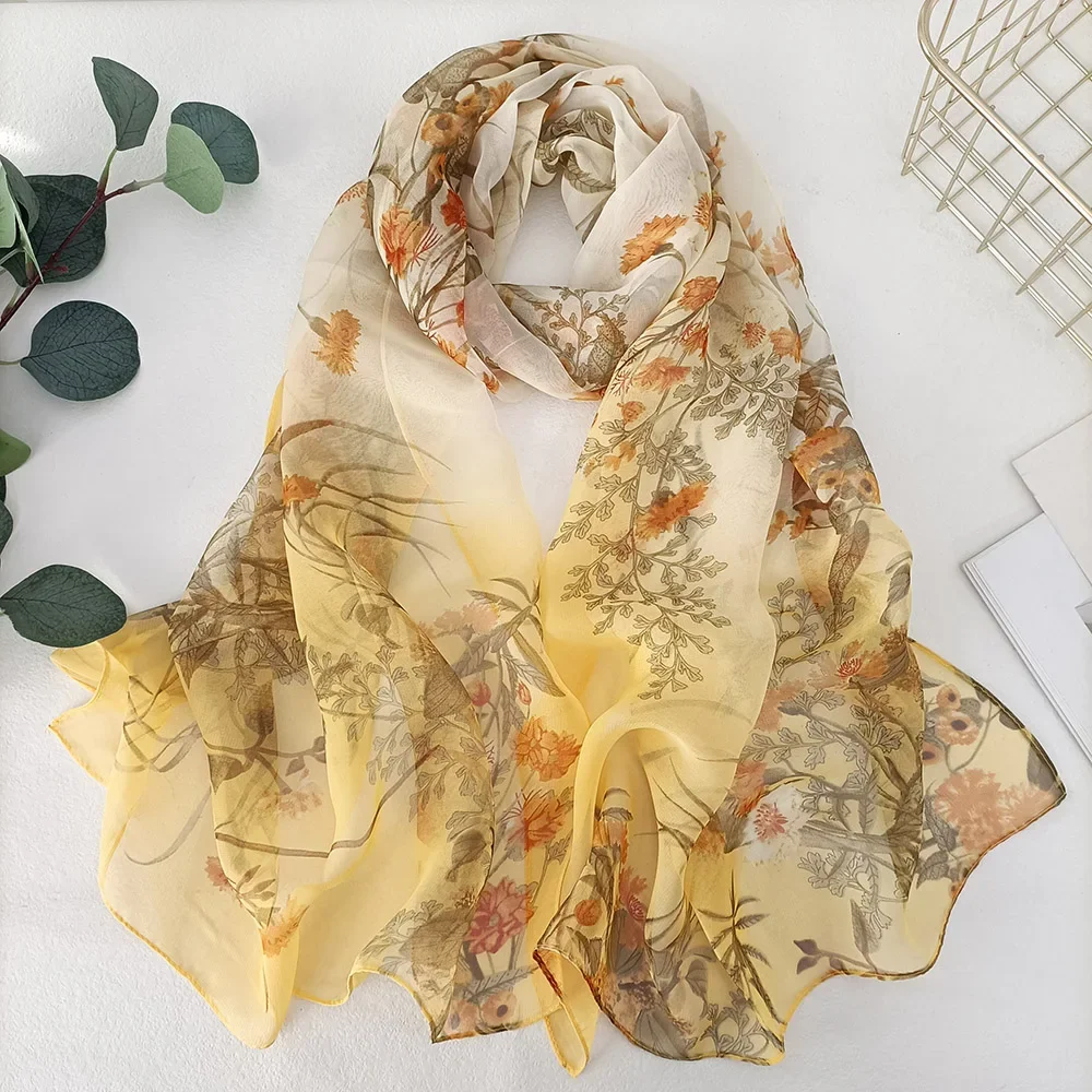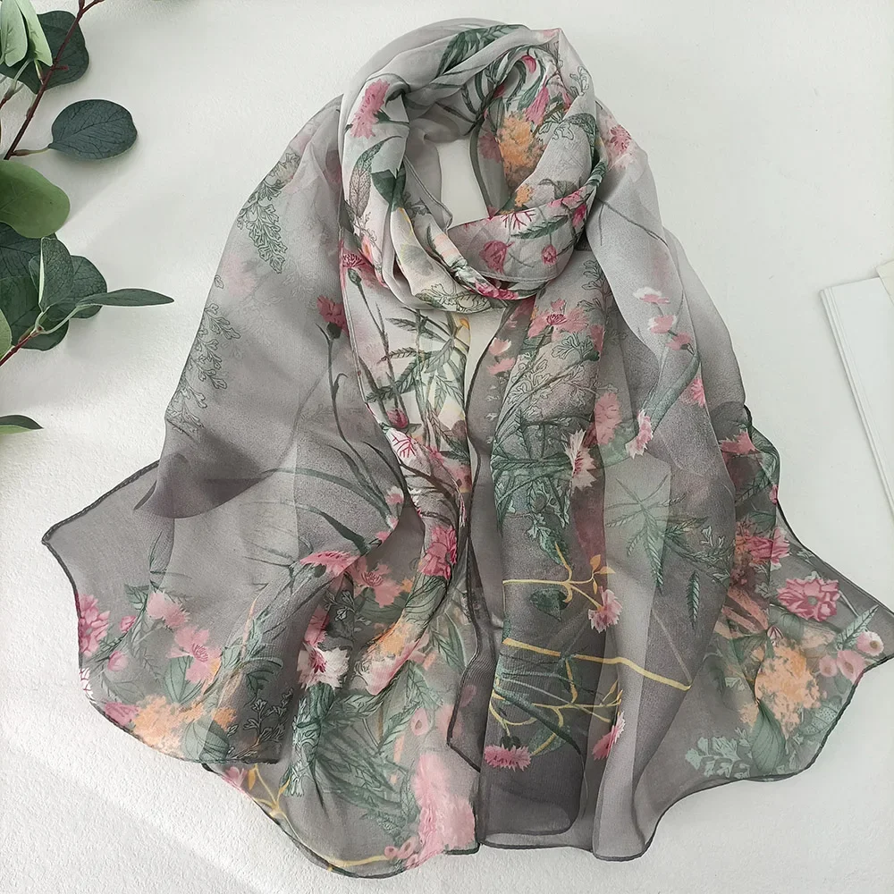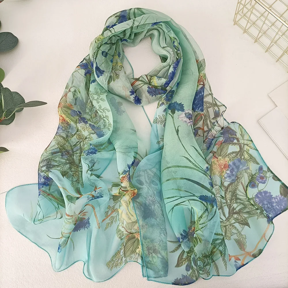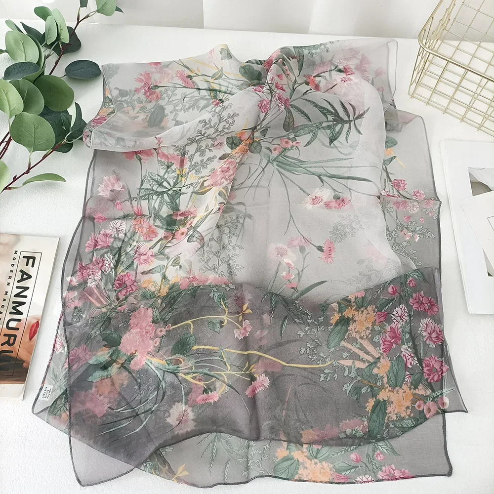 Women Elegant Chiffon Silk Scarves Fashion Versatile Flower Wraps Summer Beach Sunscreen Thin Scarf Georgette Bandana Hijab