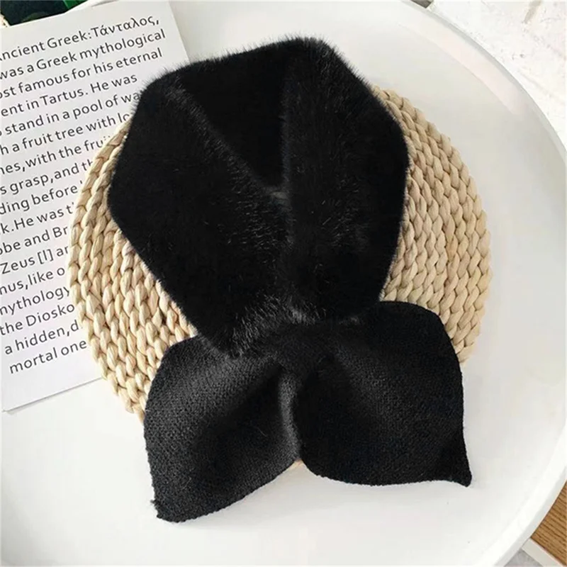 Women Scarves Girls Ladies Autumn Winter Knitted Scarf Sweet Cute Comfortable Warm Female Cross Straps Shawl Soft Neck Scarf